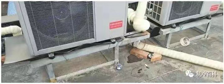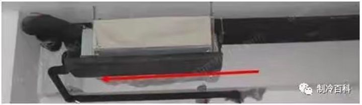 3、冷凝水管安裝不良導(dǎo)致排水不暢,積水從積水盤溢出,冷凝水管安裝無坡度