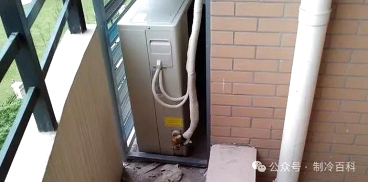 空調(diào)外機周圍擺放雜物或者被東西覆蓋,使空調(diào)外機不能正常散熱。
