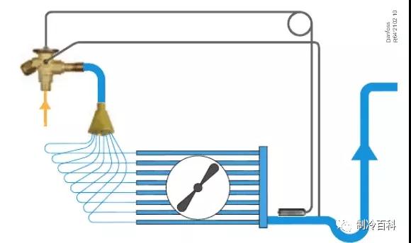 供液量不足的盤管內(nèi)制冷劑很快蒸發(fā),在出口產(chǎn)生較大過(guò)熱度,換熱面積沒(méi)有得到有效利用。供液量過(guò)多的盤管內(nèi)出口過(guò)熱度很小,甚至帶有未蒸發(fā)的液體,(本文來(lái)源:制冷百科公眾號(hào))換熱面積不足, 同時(shí),蒸發(fā)器出口總管由于制冷劑的混合或再次蒸發(fā),過(guò)熱度低于理論值,過(guò)熱度降低,對(duì)節(jié)流裝置產(chǎn)生的信號(hào)是供液量過(guò)多,節(jié)流裝置自行調(diào)節(jié),以減少供液量;供液量減少,質(zhì)量流量降低,分液效果更差,形成惡性循環(huán);最終導(dǎo)致蒸發(fā)器有效面積急劇減少,制冷量下降,整個(gè)制冷系統(tǒng)運(yùn)行性能惡化......
