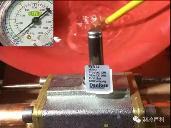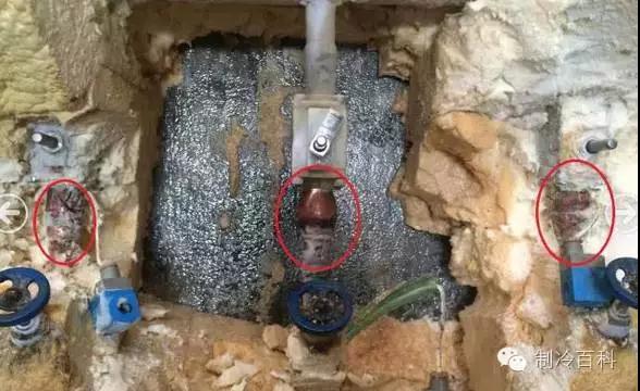 “只聽到“膨”的一聲巨響,保溫棉都給炸開了,到處都是制冷劑”現(xiàn)場用戶這樣描述到。實(shí)際情況如上圖所示,三個電磁閥進(jìn)口均有不同程度的鼓包。電磁閥爆裂時間點(diǎn)發(fā)生在停機(jī)狀態(tài)下。