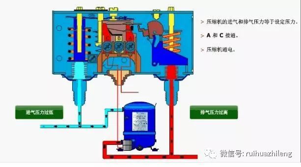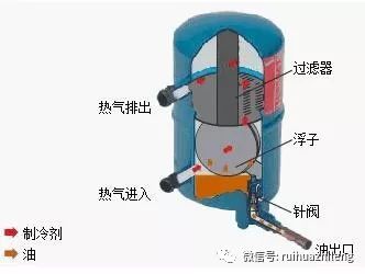 現(xiàn)在,我們將上述簡單系統(tǒng)中的部件換成實際部件:一臺壓縮機、一個冷凝器、一個毛管 和 一個蒸發(fā)器。 如下圖,這就接近于真實的制冷系統(tǒng)了。2、制冷系統(tǒng)—膨脹閥熱力膨脹閥能控制液態(tài)制冷劑從冷凝器注入蒸發(fā)器。膨脹閥能讓蒸發(fā)器出口處的過熱度保持在一定水平, 防止液態(tài)制冷劑離開蒸發(fā)器進入壓縮機。一旦液態(tài)制冷劑進入壓縮機,便會發(fā)生液擊。必須防止這種狀況 發(fā)生,以免壓縮機損壞。Pb-感溫包壓力Pe-蒸發(fā)壓力Ps-彈簧壓力Pb = Ps+Pe, 膜片不移動。當(dāng)感溫包壓力上升,導(dǎo)致 Pb > Ps+Pe 時,膜片向下移動,閥門打開,更多制冷劑流入蒸發(fā)器。當(dāng)感溫包壓力下降,導(dǎo)致 Pb < Ps+Pe 時,膜片向上移動,閥門關(guān)閉,流入蒸發(fā)器的制冷劑減少。3、制冷系統(tǒng)—儲液器在高壓條件下,壓縮后的制冷劑蒸氣在冷凝器中凝結(jié)為液體制冷劑。離開冷凝器后,液體流經(jīng)儲液器。儲液器主要有兩個功能。 1、儲液器對負荷變化造成的冷凝器液位變化進行補償。當(dāng)膨脹閥打開/關(guān)閉時,冷凝器的液位會發(fā)生改變,若儲液器中沒有“額外”的制冷劑,膨脹閥前端的液體量就可能不足,致使膨脹閥無法正常工作,造成整個系統(tǒng)變得不穩(wěn)定。2、儲液器還作為一個額外的容器,幫助液態(tài)制冷劑與制冷劑蒸氣分離,確保離開儲液器的是純液態(tài)制冷劑。4、制冷系統(tǒng)—電磁閥電磁閥是一種利用電磁力的閥門。它是一種開/關(guān)閥,根據(jù)通斷電情況控制制冷劑的流動。電磁閥大致可分為兩類。直動式電磁閥 – 閥線圈通電時,電磁閥直接打開/關(guān)閉閥口。伺服式電磁閥 – 通電或斷電時,閥門打開引導(dǎo)閥口,讓主閥口根據(jù)膜片/活塞的壓差逐漸開(取決于閥門是 NC 還是 NO)。這兩種電磁閥又各自分為:NC(常閉型)不通電時限制制冷劑流動(平常關(guān)閉),閥線圈通電時允許制冷劑流動。NO(常開型)不通電時允許制冷劑流動(平常打開),閥線圈通電時限制制冷劑流動。工作原理:冷藏室溫度上升時,感溫包壓力上升到設(shè)定值,電源端子 1 和 4 接通,從而打開電磁閥,允許制冷劑流入蒸發(fā)器。溫度下降時, 感溫包內(nèi)的壓力下降到設(shè)定值。端子 1 和 4 斷開,子 1 和 2 接通。電磁閥斷電并關(guān)閉,因而限制制冷劑流向蒸發(fā)器,使冷藏室溫度上升。5、制冷系統(tǒng)—壓力控制器若電磁閥阻止制冷劑流向蒸發(fā)器,而壓縮機仍在運轉(zhuǎn),這時會發(fā)生什么情況?進氣壓力下降。為此我們需要停止壓縮機,以便控 制系統(tǒng)壓力,防止進氣壓力降到標定壓力之下。此外,若由于冷凝器太臟或風(fēng)扇故障導(dǎo)致冷凝壓力升得過高,也必須停止壓縮機, 以防壓縮機超出工作范圍。壓力控制器能防止進氣壓力(蒸發(fā)器壓力)過低或排氣壓力(冷 凝器壓力)過高,以此控制和保護系統(tǒng)。壓力控制器主要有兩個功能:保護(或安全)功能: 限制壓力,系統(tǒng)壓力過低或過高時切 斷電源。控制功能 壓縮機循環(huán)、風(fēng)扇循環(huán)和排空。常見的壓力控制器有兩種:單壓控制器: 分為低壓控制器和高壓控制器。雙壓控制器:一個控制器兼具低壓控制和高壓控制。壓縮機高低壓保護:壓縮機常常需要保護,以防止冷凝壓力過高或者進氣壓力過低。實現(xiàn)的方法是使用兩個單壓開關(guān)或者一個雙壓開關(guān)。開關(guān)有多種 電氣接觸類型。這里看到的是一個簡單的類型。高壓和低壓開關(guān)組合在一個殼體內(nèi)。兩個球體作用于兩者之間的裝置。若壓力達 到“高”設(shè)定值,開關(guān)將打開觸點A 和 C。若壓力落到“低”設(shè)定值以下,開關(guān)也會打開觸點 A 和 C。6、制冷系統(tǒng)—油分離器壓縮機排放的制冷劑熱氣將帶走壓縮機內(nèi)的油。有時候量太大,帶走的油不再回到壓縮機。為了防止這種狀況,我們用油分離器將制冷劑中的油分離出來,使之回到壓縮機。油分離器的作用: 1、油分離器的作用是將熱氣中的油分離出來,并通過自帶的控制 裝置讓油回到壓縮機的集油槽。2、油分離器可防止油量不足,對壓縮機具有保護作用。3、油分離器可防止油積聚在礙事之處并降低效率,因而對制冷系 統(tǒng)具有保護作用。油分離器的功能:1、 把油從排放的制冷劑氣體中分離出來。2、過濾器可防止油逸入制冷系統(tǒng)。3、 將油收集到分離器底部。 4、油位升高時,浮子打開一個針閥,讓油回到壓縮機集油槽。5、油位下降時,浮子向下移動并關(guān)閉針閥。7、制冷系統(tǒng)—干燥過濾器作用:制冷系統(tǒng)內(nèi)可能存在其他異物,例如水、金屬氧化物和污垢,它們會降低系統(tǒng)的工作效率或者令系統(tǒng)停止工作。我們用干燥過濾器清除制冷劑中的這些異物,確保系統(tǒng)更有效地工作。干燥過濾器的作用是防止制冷系統(tǒng)吸入有害物質(zhì),可以清除制冷劑中的水分,從而防止膨脹閥 的流口上結(jié)冰,它還能清除其他固體污染物、腐蝕物和酸,能清除異物顆粒,zui大限度防止系統(tǒng)中發(fā)生 化學(xué)反應(yīng)。來源:制冷百科【免責(zé)聲明】:本公眾號文章版權(quán)歸原作者所有,內(nèi)容為作者個人觀點。如有侵權(quán),請聯(lián)系刪除。